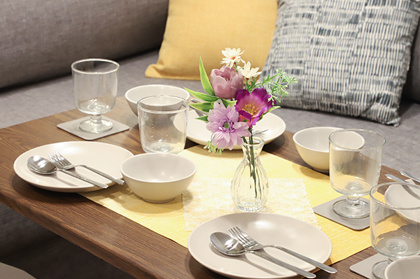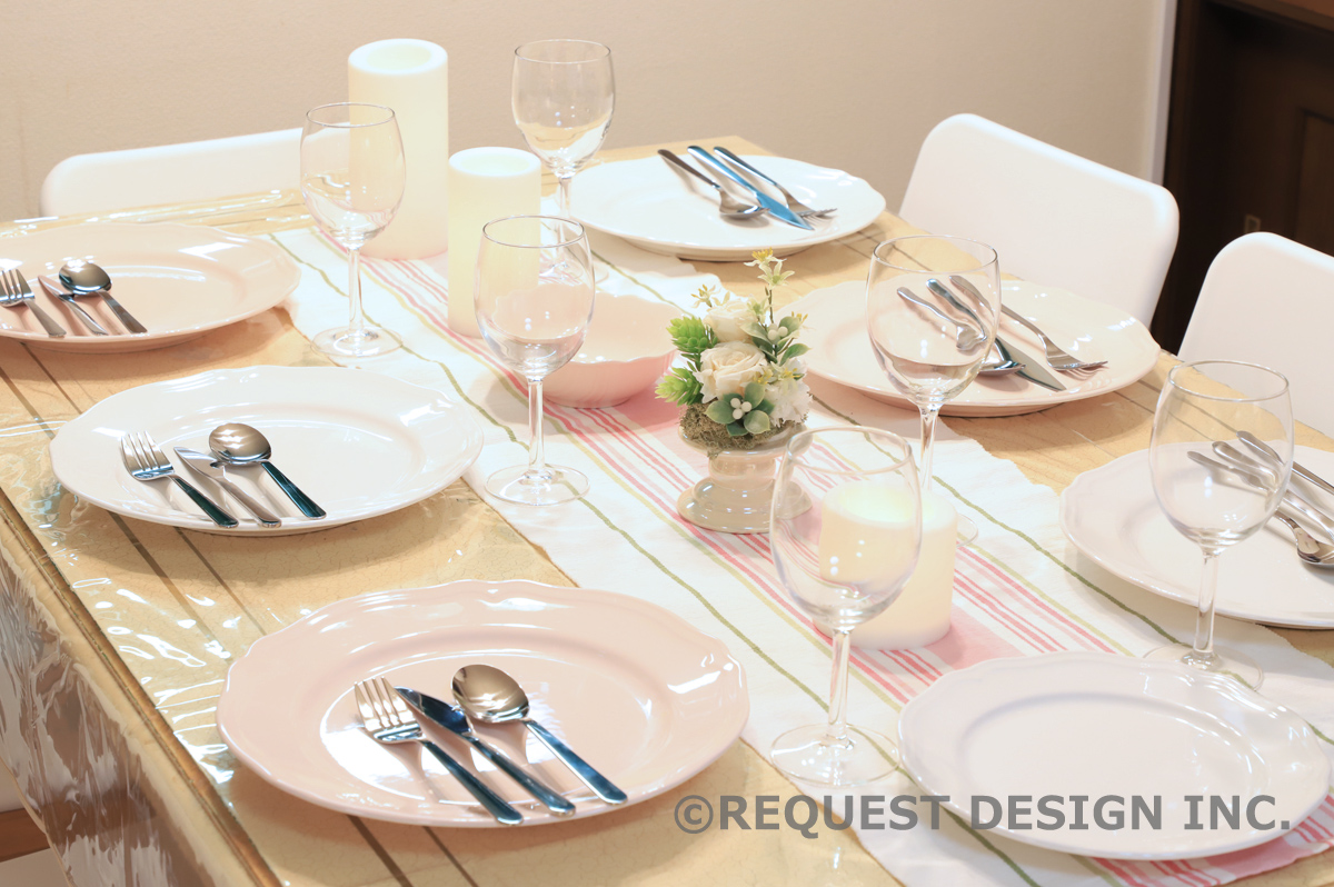 テーブルコーディネートをご希望の場合には、予め、食器・ランチョンマット・テーブルランナー・卓上の装飾(花器など)をご購入いただき、事前にオーナー様ご自身での基本的なセットアップをお願いします当日、微調整させていただきます。
