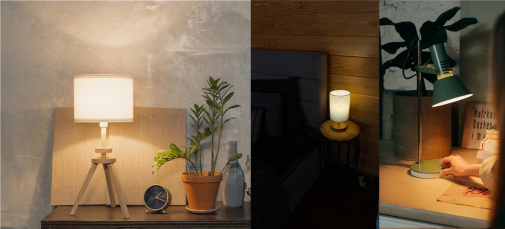 ベッドサイドや卓上など様々な場所で設置できるテーブルランプは、いろいろな使い方が出来ておすすめです。