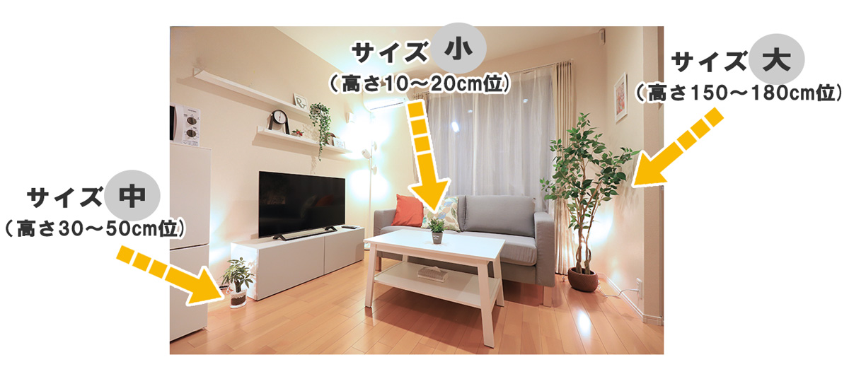 植物(インテリアグリーン)があるとお部屋が華やかな雰囲気になり、インテリア性も上がります。ホームセンターなどで大小さまざまなフェイクグリーンが販売されています。