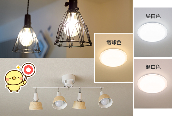 電球は、暖かみのある温白色・電球色がおすすめです